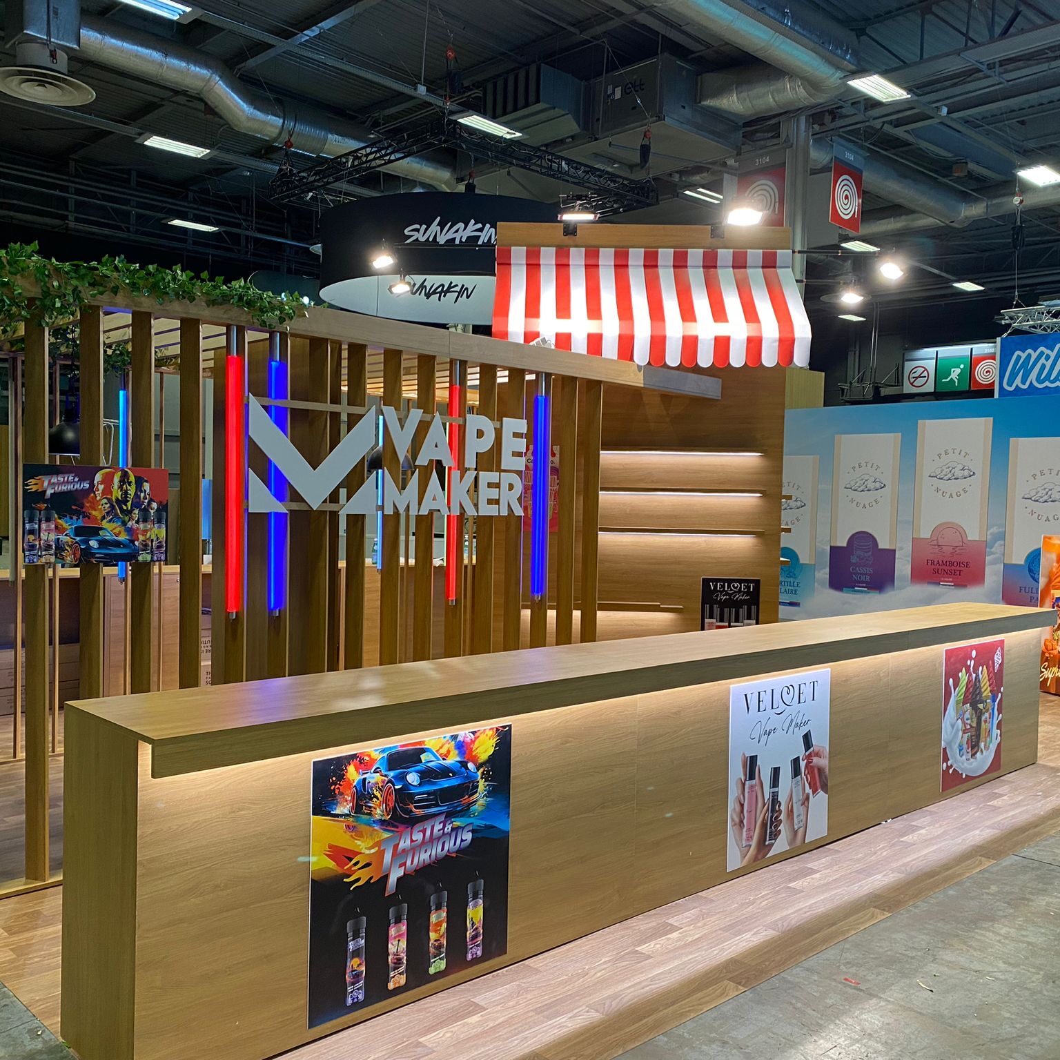 Réalisation sur-mesure pour le salon VAPEXPO pour notre client VAPE MAKER ! Du sur-mesure avec pose et dépose.